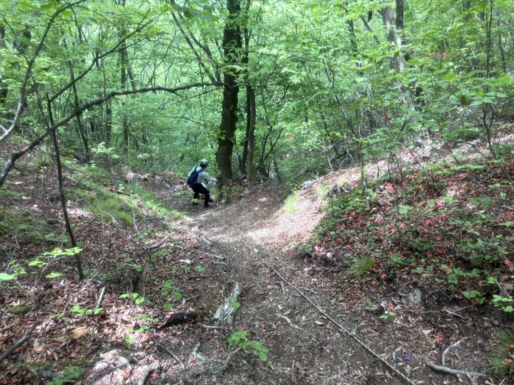 今回の登山は初夏ということで空気が霞み遠望は望めませんでしたが、山頂からは360度の展望が開け、西上州の山塊の奥深さを実感できました。なお、下山は急斜面コースを下りましたが、滑りやすく落石も起こしやすいので要注意です。脚力に自信がなければ、往復とも巻き道コースを選んだほうがよさそうです。